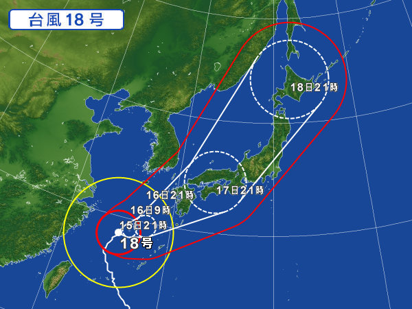 ただ、大型台風の進路が心配(以下、Yahoo!天気より拝借)
